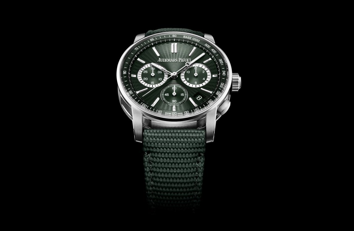 Dial | Green dial, green counters and rhodium-toned external zone, green counter at 6, white gold hour-markers and hands with luminescent coating, green inner bezel. |