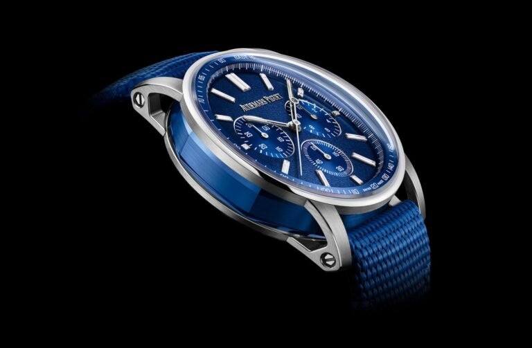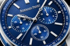 Dial | The Tuscany Blue grained dial combines a blue inner bezel and azured blue counters with 18-carat white gold luminescent hands and matching hour-markers set with baguette-cut diamonds. |