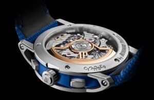 Bracelet | The blue textured rubber strap is fitted with an 18-carat white gold pin buckle. |