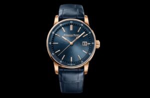 Dial | “Bleu nuit, Nuage 50” dial, pink gold applied hour-markers and hands with luminescent coating, blue inner bezel. |