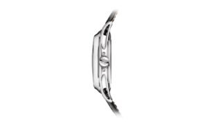 Alligator with square scales, hand-stitched, shiny black. Prong buckle