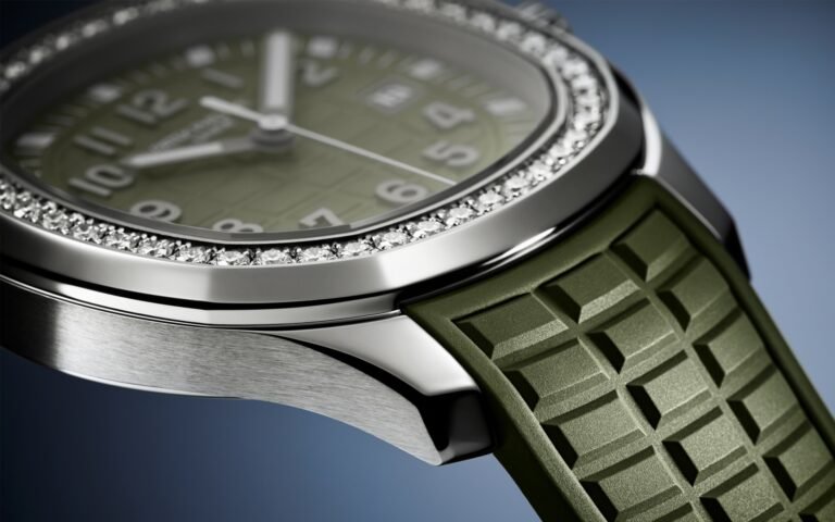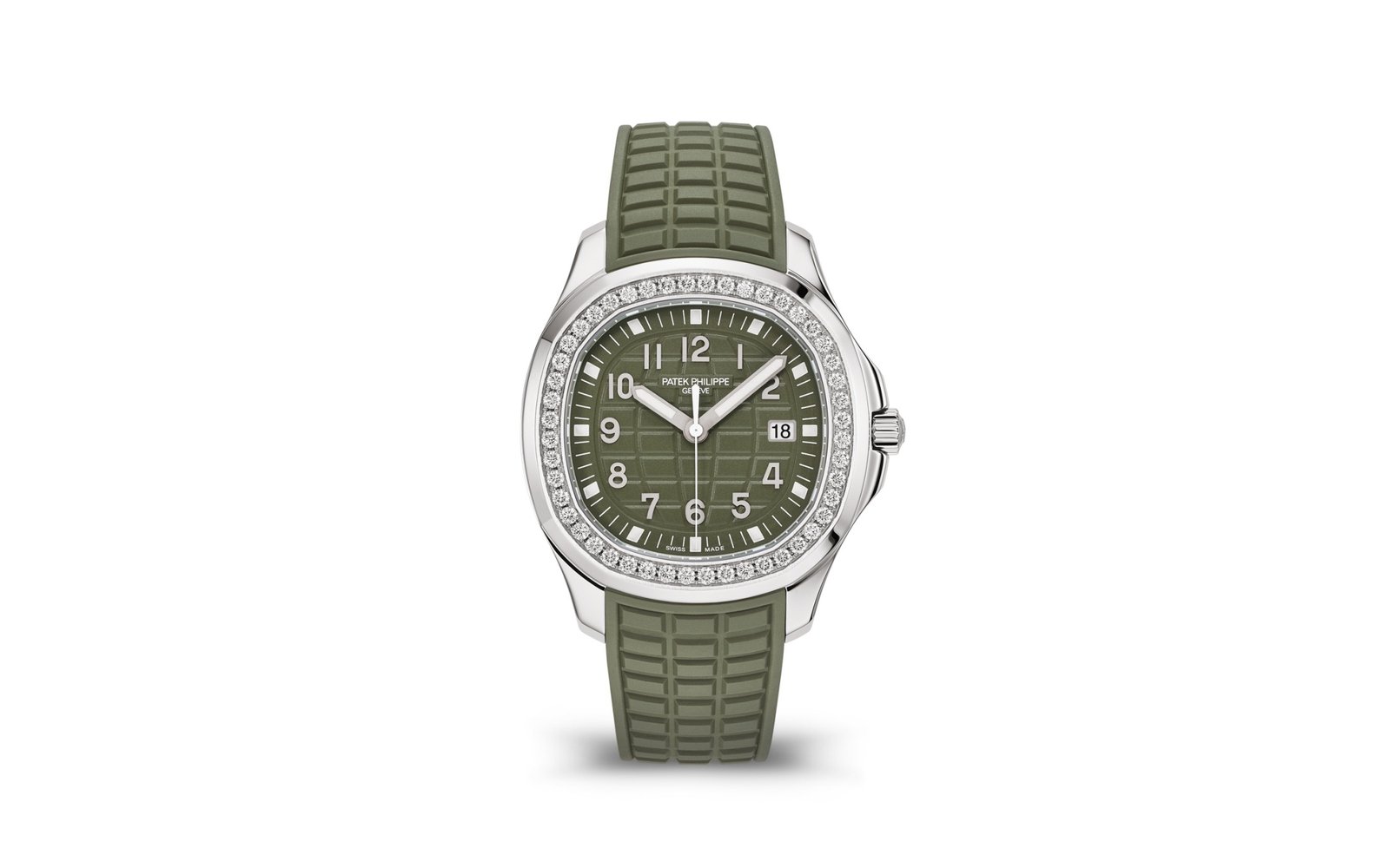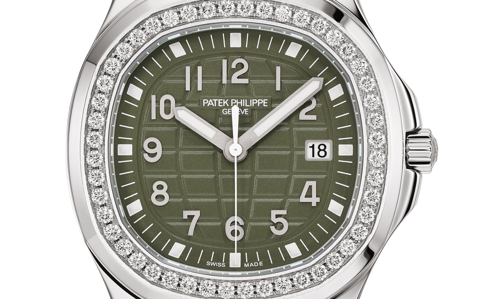 Dial | Khaki green, embossed with Aquanaut pattern, gold applied numerals |