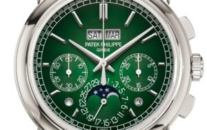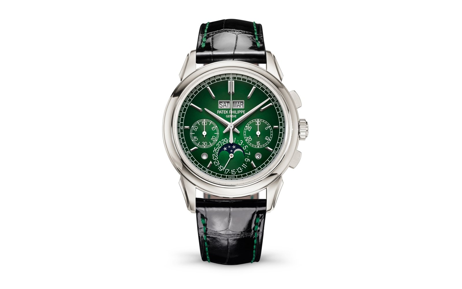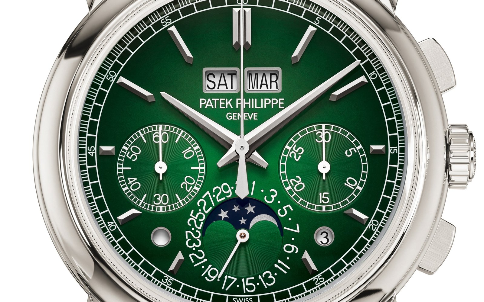 Dial | Laquered green, black-gradient rim, gold applied hour markers |