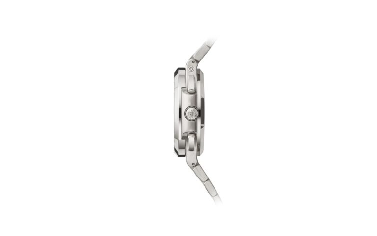 Steel. Patented fold-over clasp with lockable adjustment system