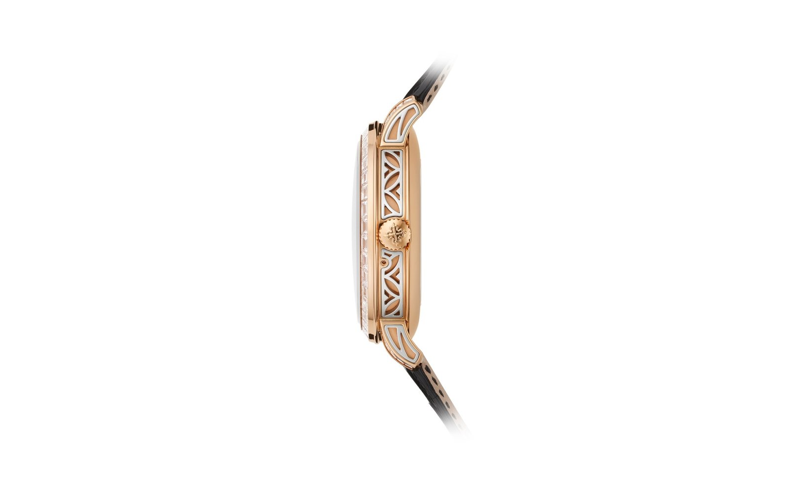 58 baguette diamonds: ~5.25 cts. (bezel and lugs). 22 baguette diamonds: ~0.97 ct. (clasp). Total of 80 baguette diamonds: ~6.22 cts