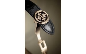 Dial | Transparent sapphire, black hour circle with minute markers printed in white and golden powdered dots |