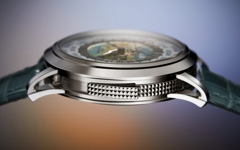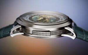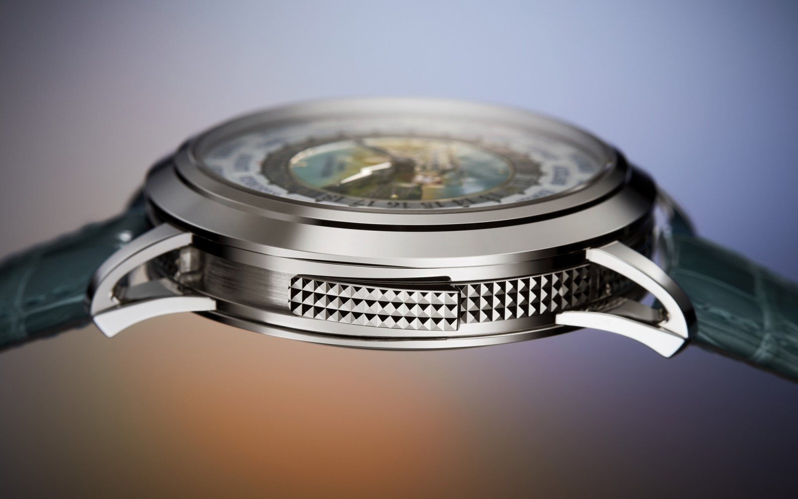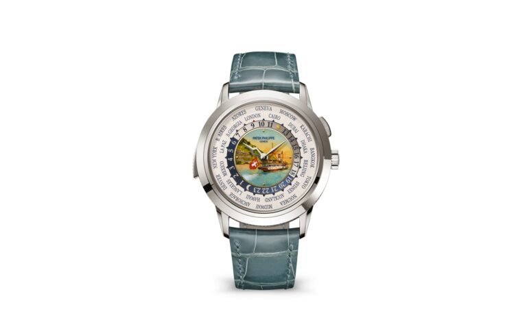 Dial | Grand Feu cloisonné enamel center with steamboat cruising on Lake Geneva. 18K gold dial plate and 24-hour ring |