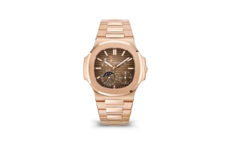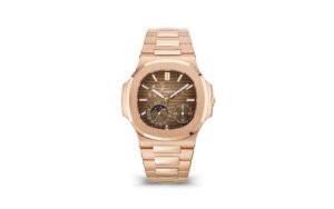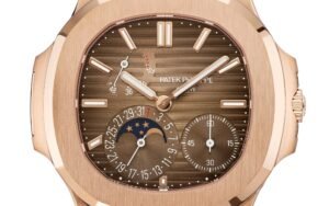 Sunburst brown, black-gradient rim, horizontally embossed, gold applied hour markers with luminescent coating