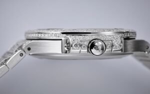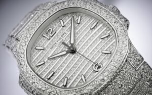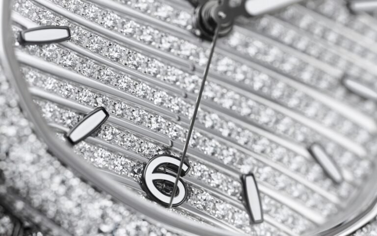 Gemsetting | 283 diamonds: 1.07 ct. (dial). 456 diamonds: 2.25 cts. (case). 20 diamonds: 0.03 ct. (crown). 1,605 diamonds: 8.28 cts. (bracelet). Total of 2,364 diamonds: 11.63 cts |