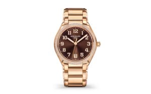 Dial | Brown sunburst dial. Gold applied numerals with luminescent coating |