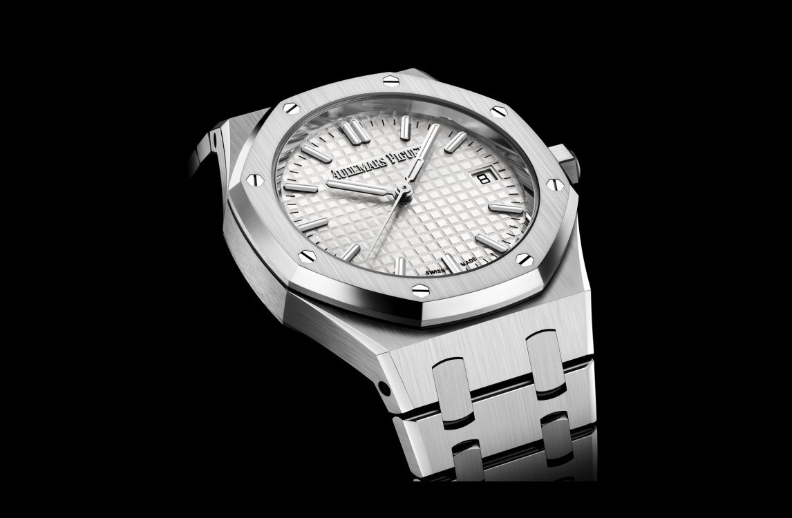 | Dial | Silver-toned dial with “Grande Tapisserie” pattern, white gold applied hour-markers and Royal Oak hands with luminescent coating. |